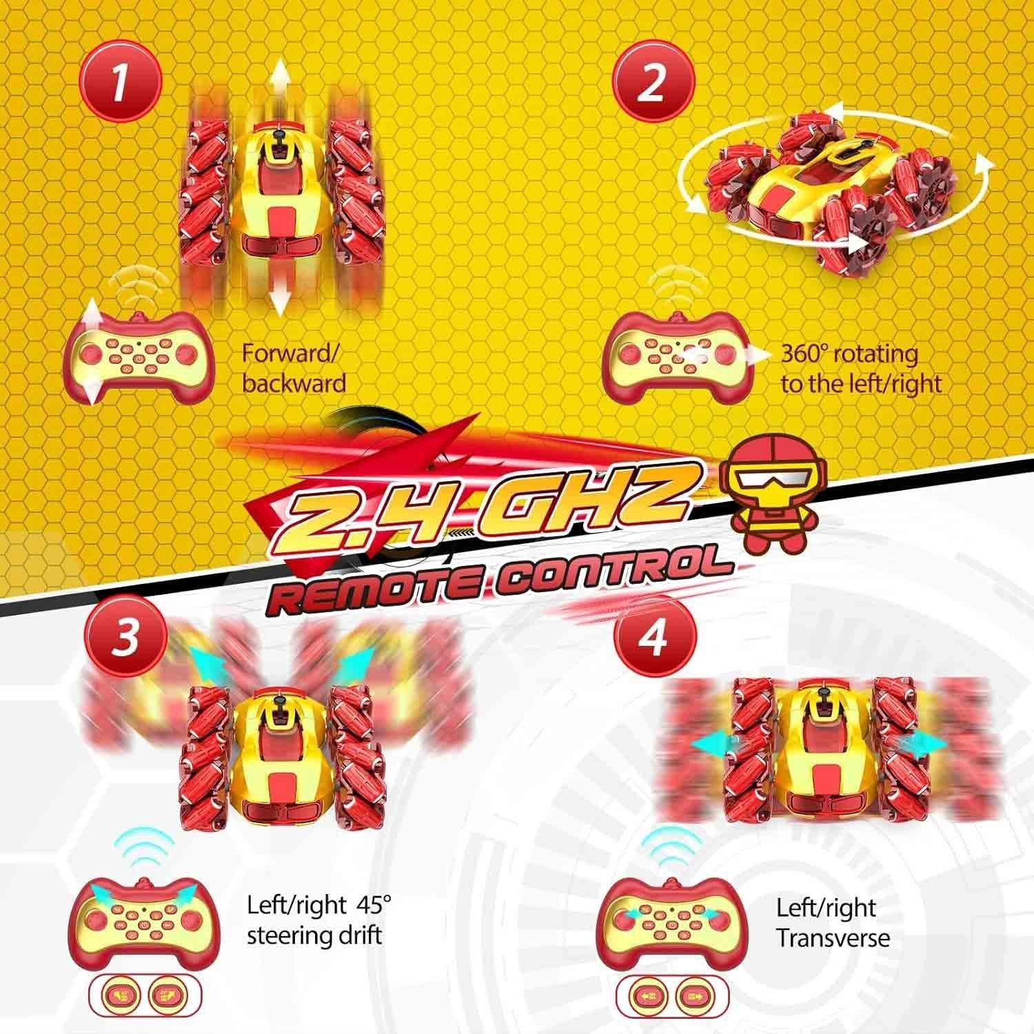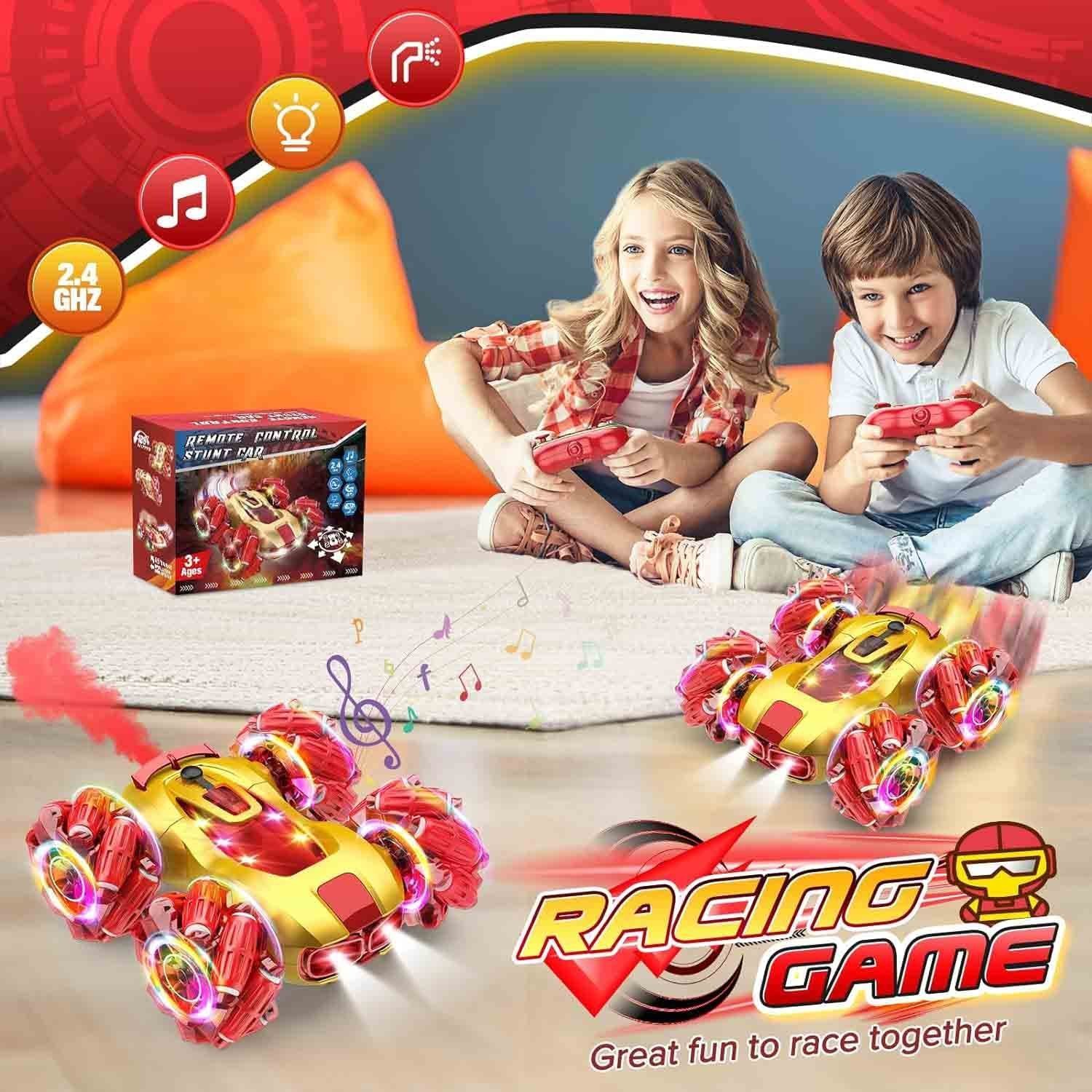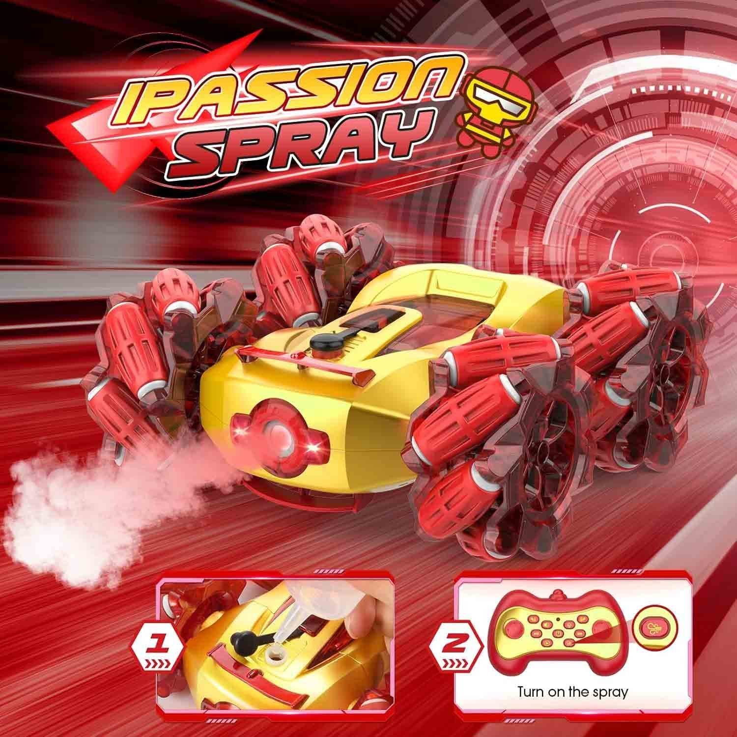 • The Braxel Remote Control Car is the ultimate gift for boys aged 3-12, designed to provide endless fun and excitement. With its upgraded multi-function capabilities, the car can move forward, backward, rotate, drift, and perform 360° spins, making it perfect for outdoor play. The car features a vibrant red and gold design that is loved by kids, along with built-in spray and music functions. Equipped with a long-lasting rechargeable battery and USB Type-C charging, the car ensures hours of uninterrupted play. Its durable, impact-resistant tires allow it to easily navigate any terrain. An ideal gift for birthdays or special occasions!