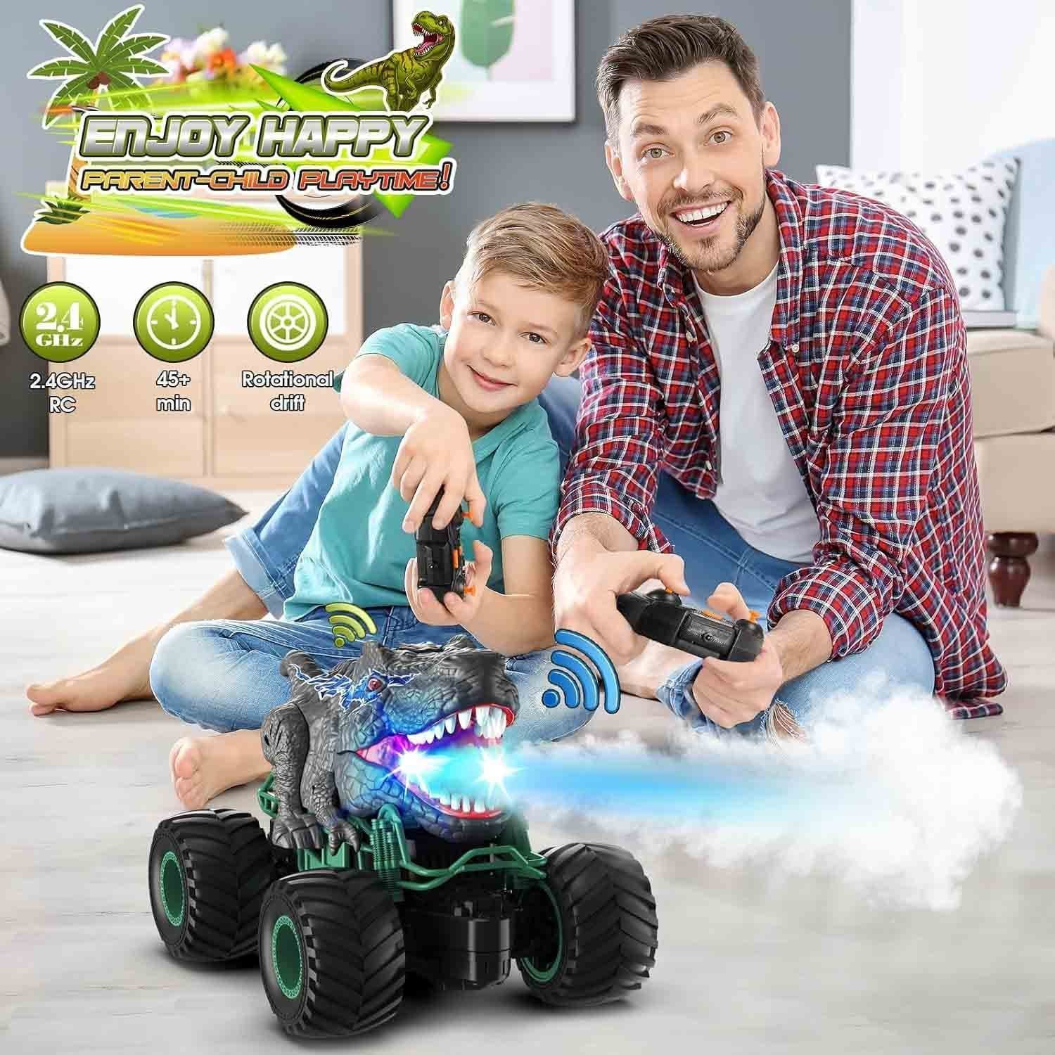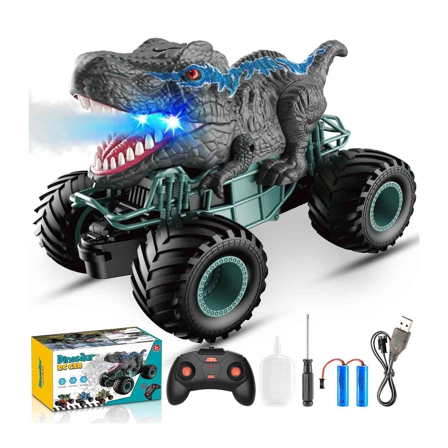 Dinosaur Toys for Boys, 1:16 Scale Remote Control Monster Truck Toys with Spray Roar LED Lights, Kids Toys for 4 5 6 7 8 Year Old Boys Gifts