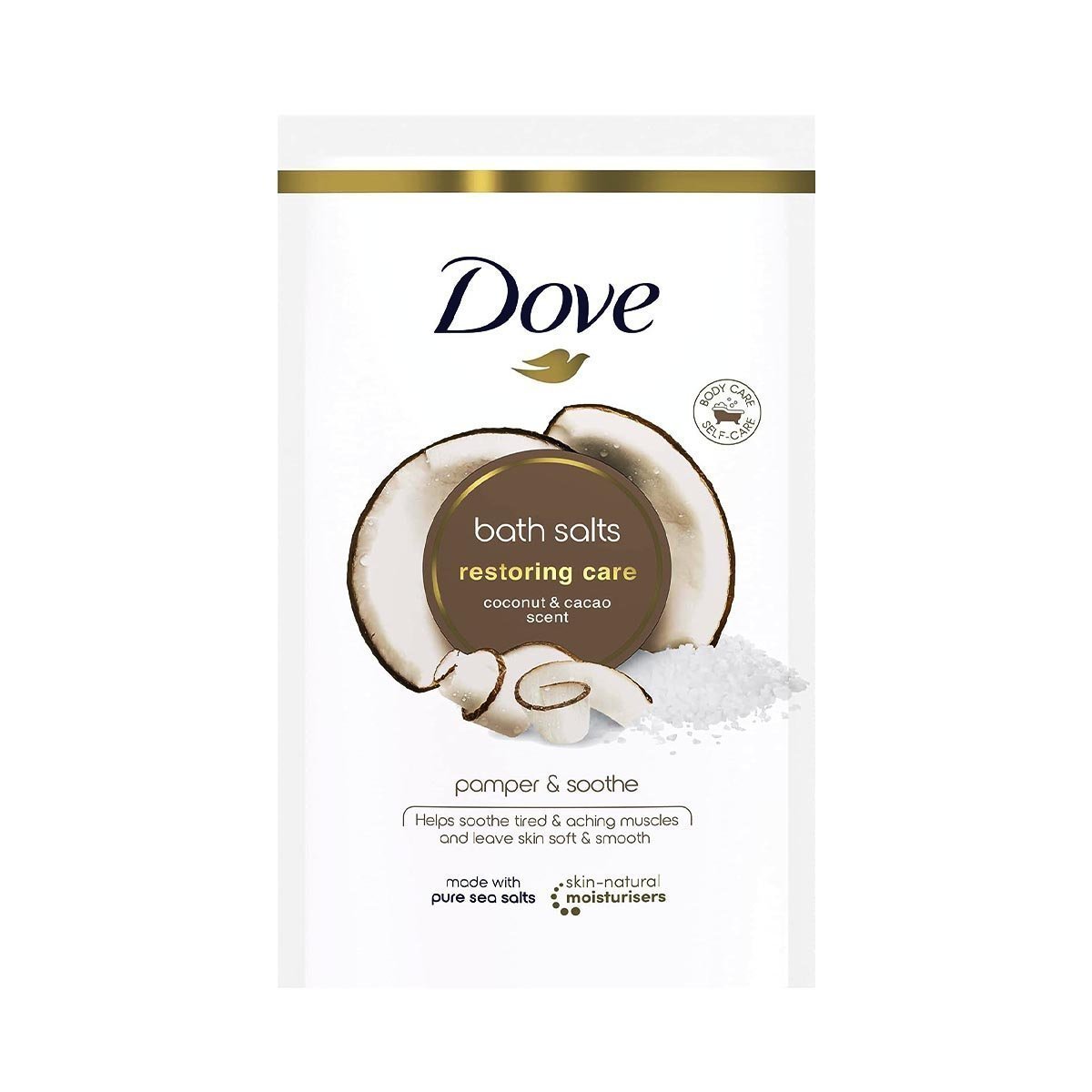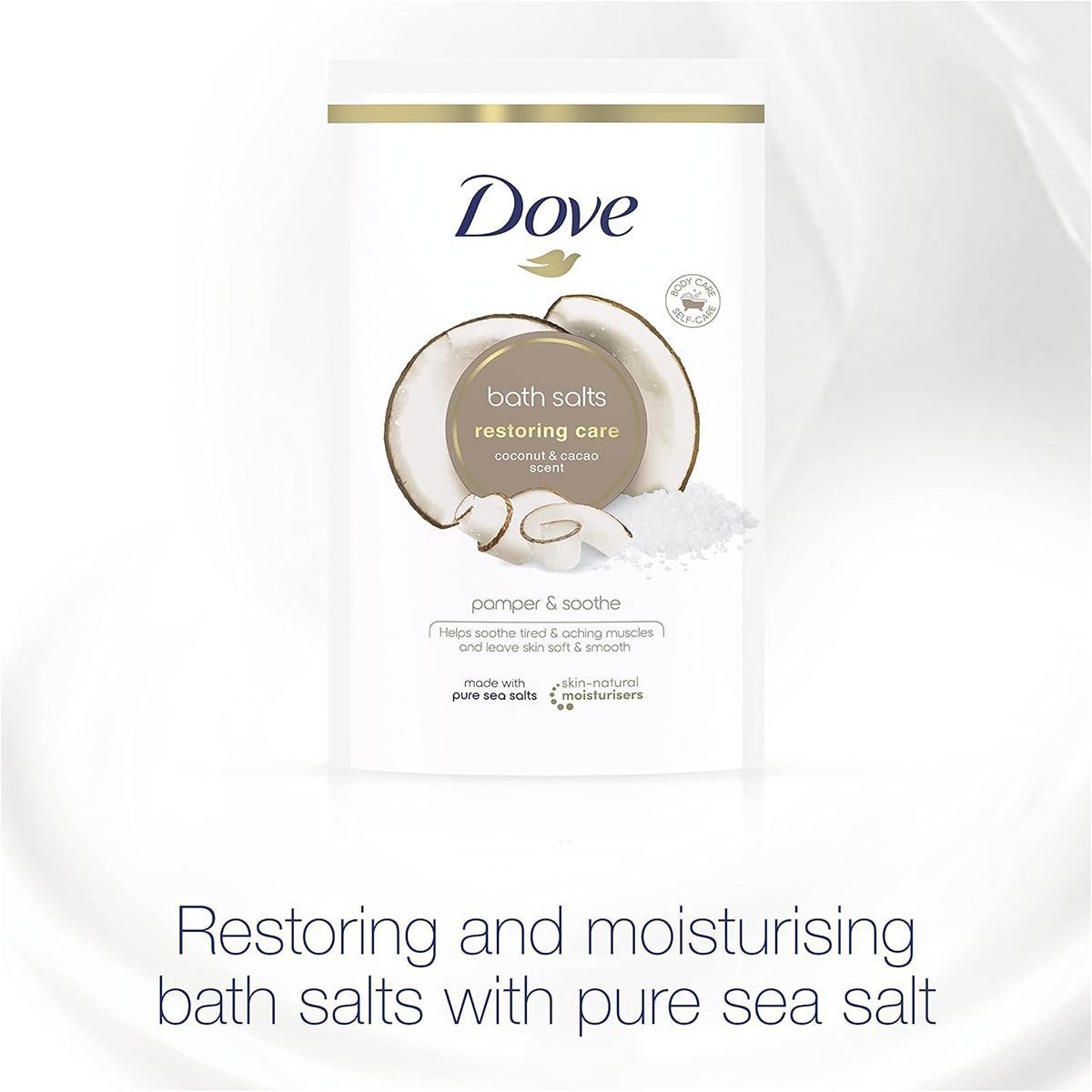 • Dove Restoring Care Bath Salts are infused with indulgent coconut & cacao scent to pamper your mind & body and delicately fragrance your skin