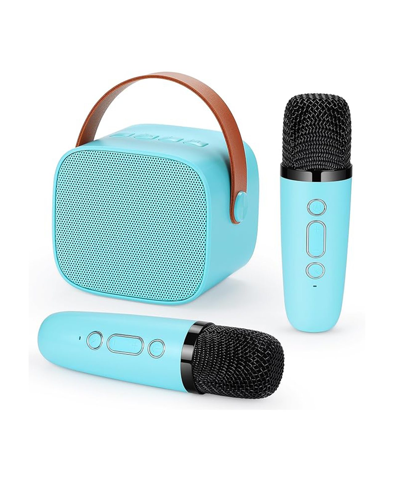 Duemste Karaoke Machine Kids with 2 Wireless Microphone,Portable Karaoke Machine with Bluetooth with LED Light and Blue Sticker for Boys Girls Families Birthday Party,Blue